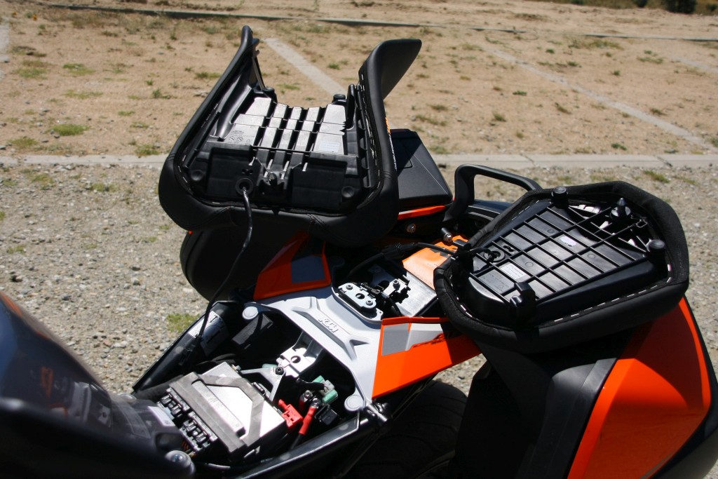 Esta GT no es una moto precisamente baja, como buena KTM, y necesitas medir al menos 1,75 para poder apoyar los pies con una mínima seguridad. Por otro lado, además, la herencia “off road” les ha llevado a instalar una pata de cabra muy larga que a veces deja la moto demasiado vertical cuando la aparcas.