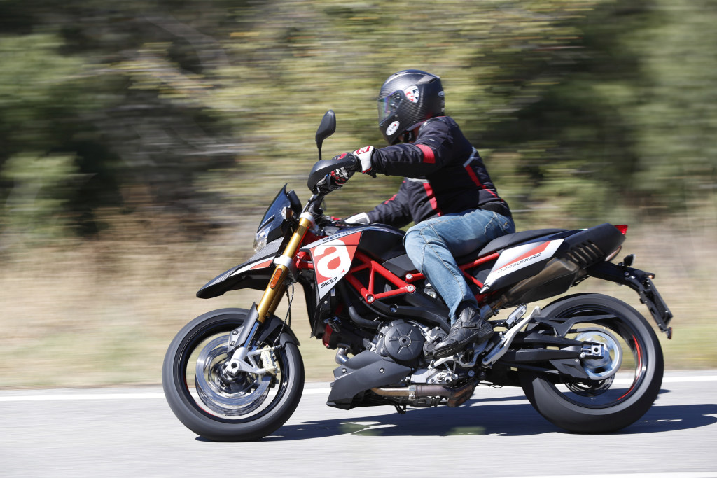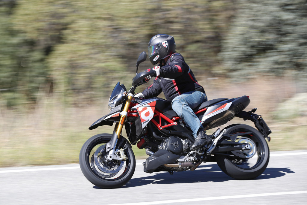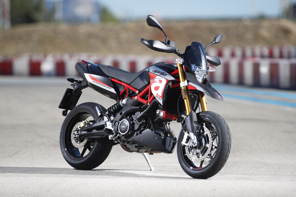 Por otro lado, la Dorsoduro tiene la misma base pero con una estética claramente supermotard e incorpora una amortiguación más larga. Por ejemplo, la horquilla crece de 120 a 160 mm de recorrido y la trasera de 130 a 160.