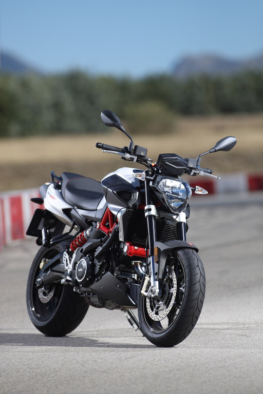Así, que notas claramente más elevado y con ergonomía más “fun bike” como lo denominan en Aprilia. Su precio es de 9.599 €.