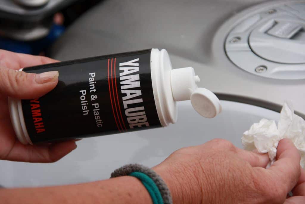 Tanto la carrocería como tu casco se ven sometidos a continúas salpicaduras de pequeñas chinas o golpes, o ralladuras variadas por cuestiones ambientales como pueden ser mosquitos e incluso que se los hagas tú mismo con los guantes o la hebilla del cinturón. Para esto, no hay nada mejor que usar pulimento, una pasta que, una vez que hayas lavado bien la pieza, frotas un rato y dejas secar, tras lo cual lo retiras con un trapo bien seco.