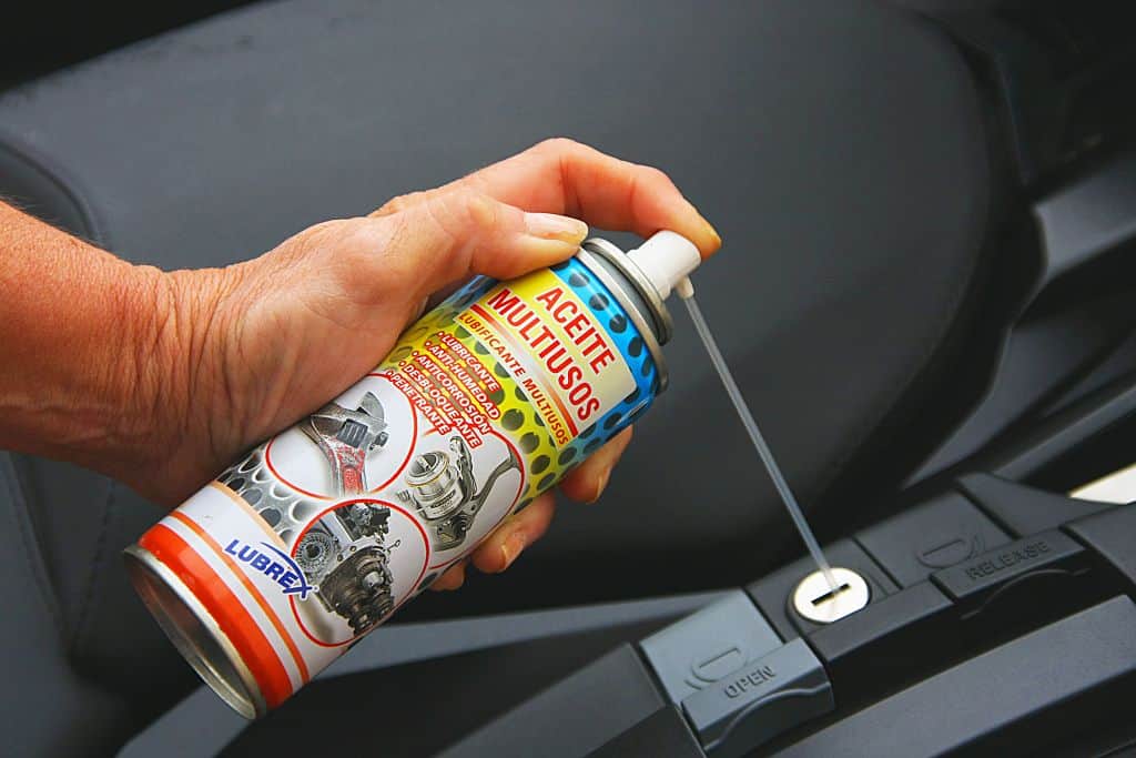 Así, puedes pulverizarlo dentro de una cerradura o de un tensor del cable del embrague, de forma que te ahorras problemas.