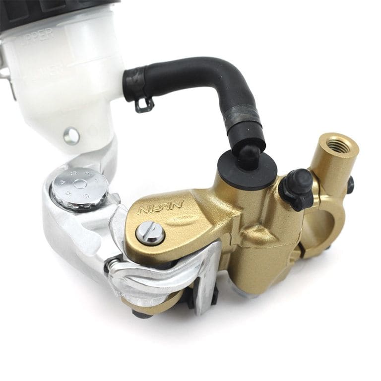 En ese momento, debes comprobar el nivel que indica el pequeño depósito de líquido que está encima de la maneta, y unida a ella. Posiblemente te lo encuentres demasiado bajo, y esto se debe a que, con el uso, la continua presión de la bomba y los recalentamientos, alguna pequeña burbuja del sistema puede haberse purgado o también que el líquido del circuito haya “rellenado” el espacio que se ha desgastado del material frenante de las pastillas contra el disco, por lo que ha bajado el nivel.