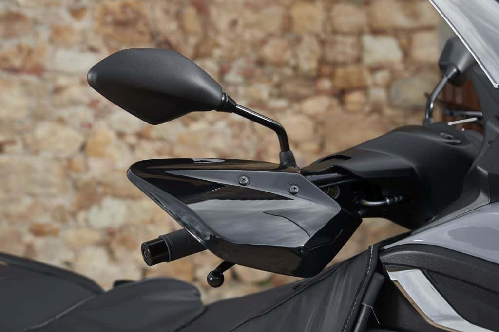 No obstante, desde el punto de vista totalmente de usuario, incorpora dos buenos detalles que su hermana 125 no tiene. De momento, encontramos un simple pero efectivo (y para mi necesario en cualquier scooter ya de cierta cilindrada) freno de mano por un simple tirador, y no el muchas veces incómodo “automático” incorporado al desplegar la pata de cabra que se está poniendo de moda y ya es habitual en muchos modelos.