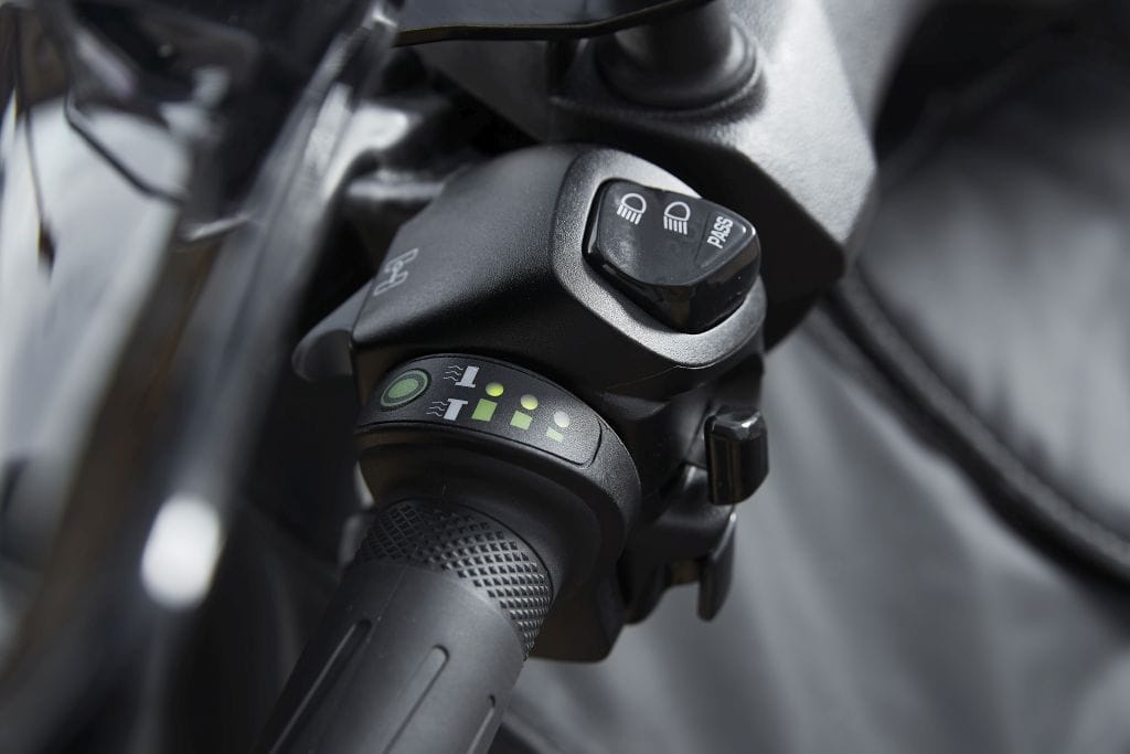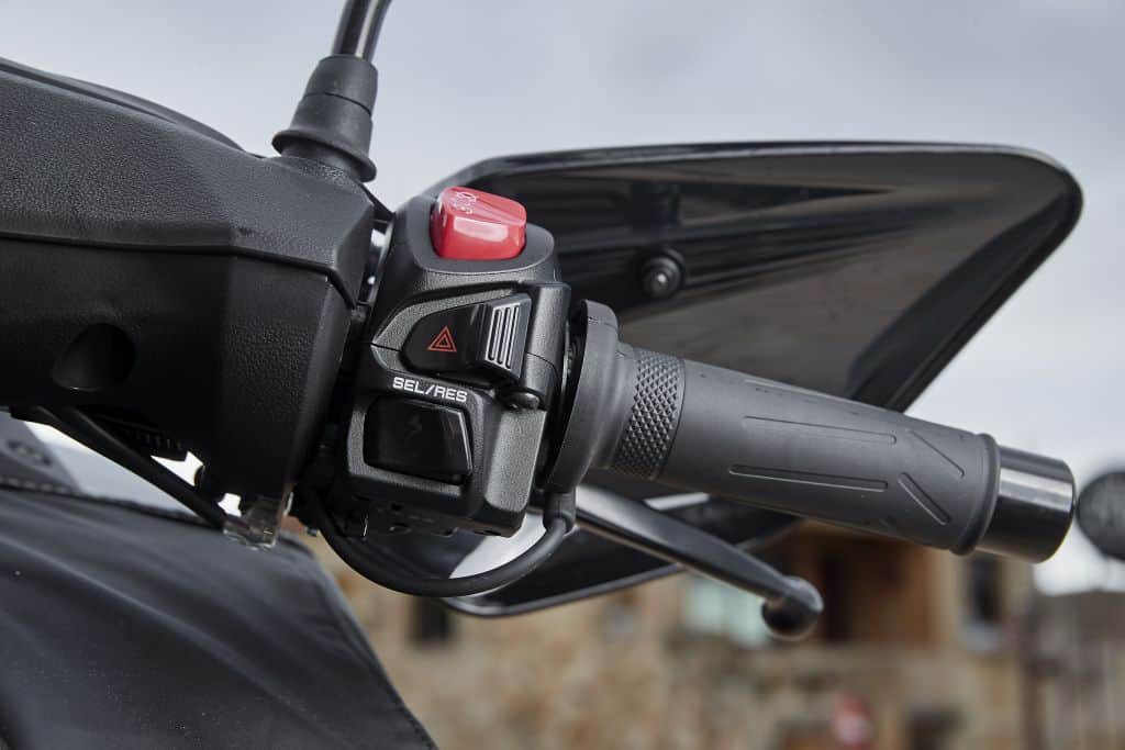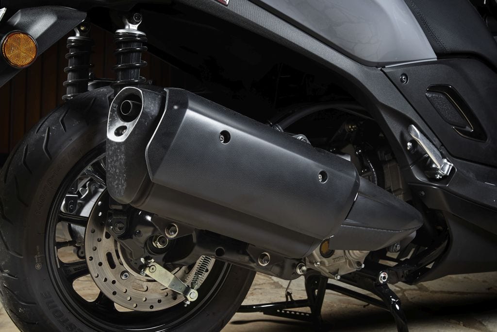 Cuatro válvulas, refrigeración líquida, y declara 28 caballos de potencia, lo que permite buenas prestaciones incluso con dos personas adultas. Además, incorpora ABS y control de tracción anulable, además de un sistema de iluminación completamente de LED.