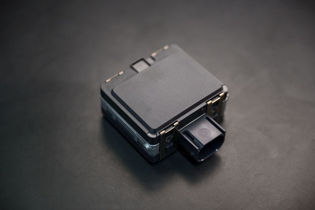 Todo este proyecto se ha desarrollado junto a Bosch, como es habitual en la industria europea (por ejemplo, son colaboradores históricos de BMW en sistemas como el ABS), y ambas unidades de radar se colocan en el frontal y en la parte trasera tal como puedes ver en las fotos de forma tremendamente integrada el conjunto gracias a su compacidad. Sus dimensiones reales son muy parecidas a la de cualquier camarada acción tipo GoPro: 70 x 60 x 28 mm, y su peso sólo es de 190 g., como puedes ver en esta foto.