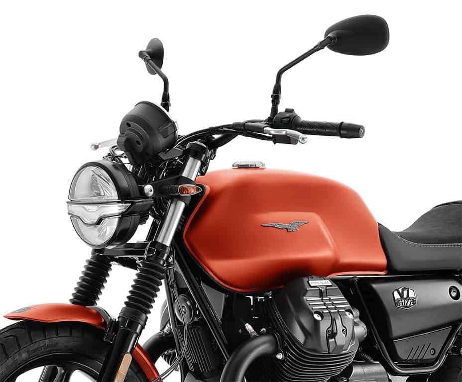 Por otro lado, incorpora todas las luces LED con detalles como DRL (luces de día) con forma de águila en el faro delantero, también al estilo de su hermana trail V 85 TT. El control de tracción del es regulable.