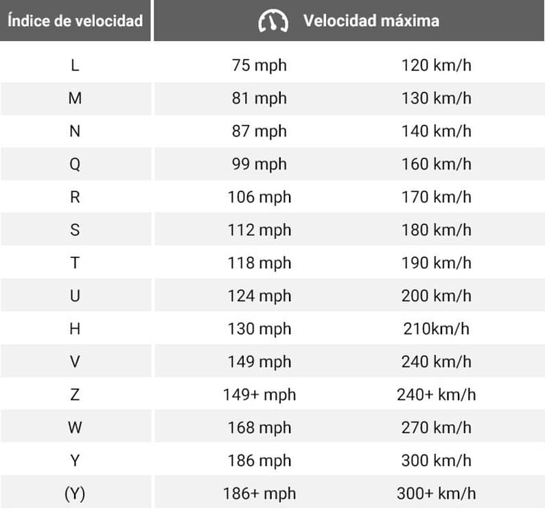 Por cierto, estos indicadores de velocidad y capacidad de carga pueden aparecer juntos. Es decir, puedes encontrar un código 60 para 250 kilos de carga y una velocidad de más de +240 km/h. Es decir, 60Z.
