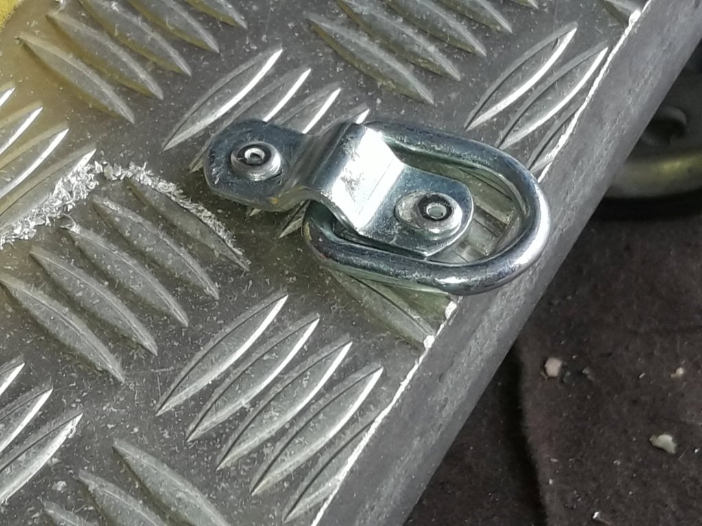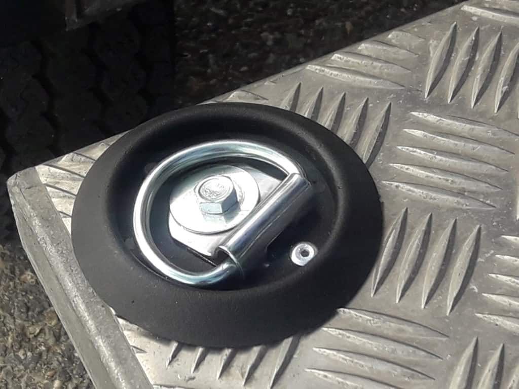 Así es como debe ir la moto durante un transporte sobre un remolque, fija y segura. Para ello, debemos elegir un remolque que tenga puntos o argollas de fijación directamente unidas a la plataforma, y si no instalarlos con remaches o tornillos. Aquí tienes fotos de ambos.