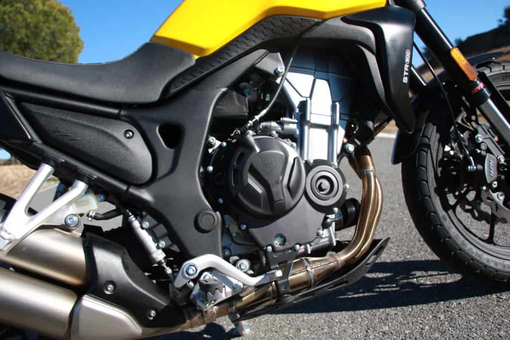 Aquí puedes encontrar toda la información sobre las dos motos, por lo que no profundizaremos mucho más en el tema técnico, pero centrémonos en la protagonista de esta prueba, la STR. Con este motor bicilíndrico y el mismo chasis doble cuna que ya conocíamos de la XR5 Montana, equipo horquilla invertida de 41 mm y amortiguador trasero Kayaba. En cuanto a las llantas, y esa es otra de las diferencias respecto a su hermana SCR, es que son de 17 pulgadas detrás y 18 delante con neumáticos de 160 y 110 mm de ancho, con llantas de aleación en lugar de radios.