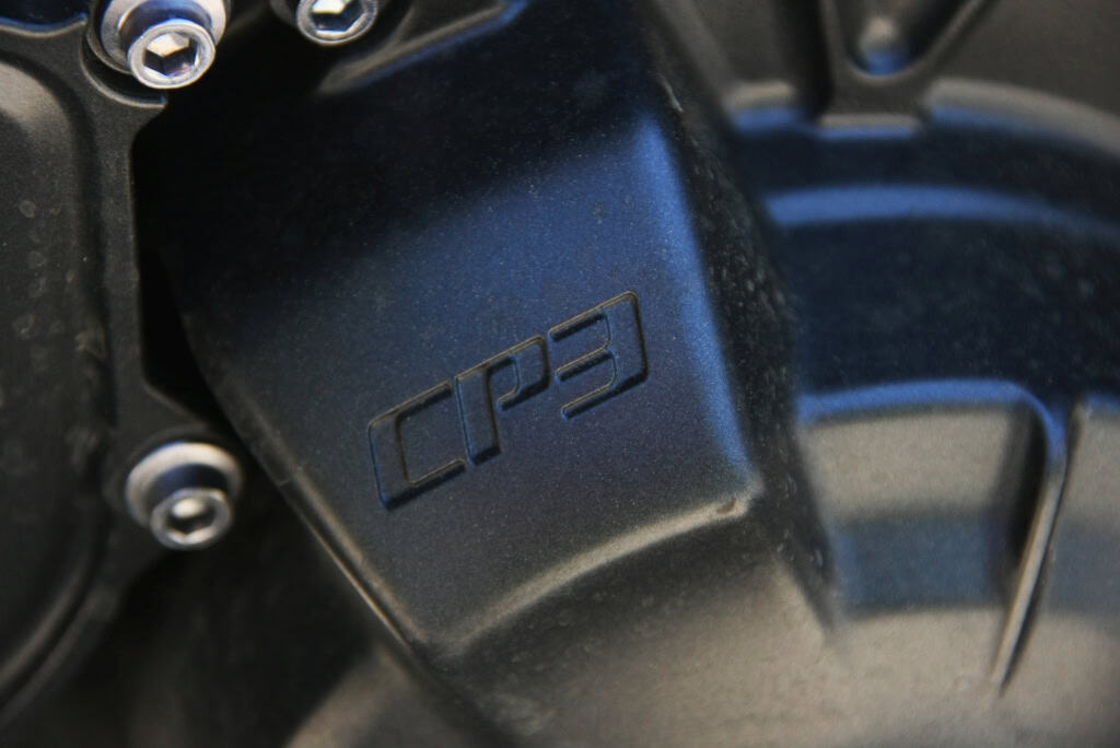 Ahora tiene 119 en este motor CP3, es decir, Crossplane de 3 cilindros, que pesa 1700 gr. menos, a lo que hay que añadir (o restar, depende de cómo lo mires) 1400 menos del escape completo. Con todo esto, anuncia un 9% menos de consumo, por lo que declara una autonomía de 350 kms.