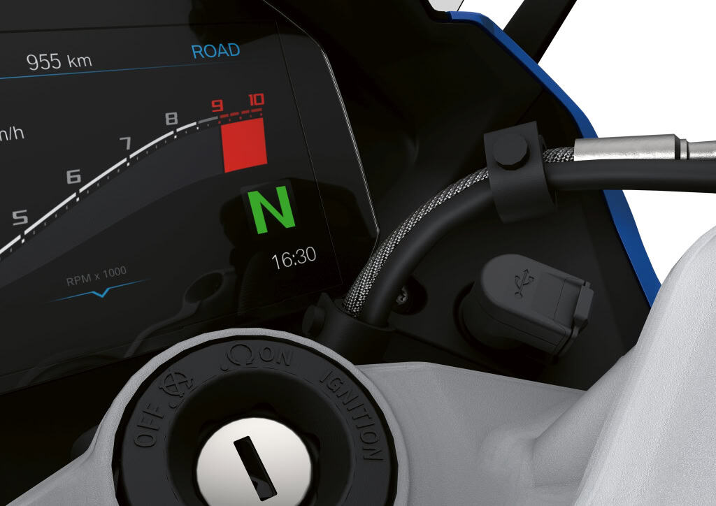 Por supuesto, incorpora de serie las ayudas electrónicas de última generación que ya conocemos en otras BMW como DTC (Control Dinámico De Tracción), Integral ABS Pro o DBC (Dinamic Brake Control), y todo ello se puede ampliar con el pack Modos de conducción Pro con elementos como el par de arrastre del motor (MSR). Como detalle para los más ruteros incorpora una toma de corriente USB-A extra de 2.400 mA de carga que permite la carga rápida de elementos como el smartphone, por lo que ahora tiene dos. También tiene calefacción en ambos asientos y en puños, ahora con 5 niveles en puños y asiento de piloto. El pasajero sigue con dos.