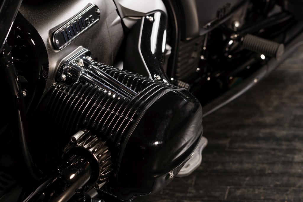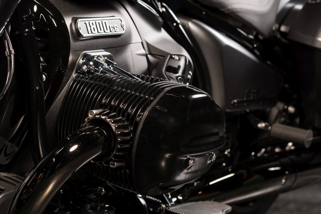 BMW respeta toda la base, como el chasis tubular doble cuna y, por supuesto, el gigantesco motor bóxer bicilíndrico de 1802 cc de 91 CV con más de 150 Nm. Eso sí, todo el motor está pavonado en negro mate con tapas brillantes. La horquilla de 49 mm. con tubos encapsulados con 120 mm. de recorrido. Las llantas son de 21 pulgadas delante con neumático de 120 mm. y 18 pulgadas detrás con neumático de 180 de ancho. La transmisión, como en todas las R 18, es de cardan con el engranaje a la vista.