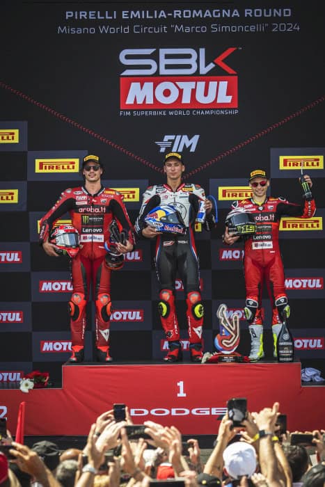 Aquí tienes los resultados detallados de esta carrera, y a nivel general lo más importante tras este round de Misano es que Toprak se coloca líder por delante de Álvaro Bautista, que ha pagado caro su caída en la carrera Superpole. Así, el turco cuenta ahora con 179 puntos, por 158 de Bulega (que también sobrepasado el español) y Álvaro es ahora tercero con 155 puntos.