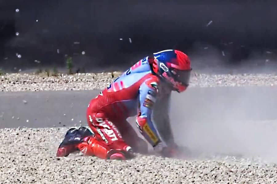 Así, los primeros fueron Bagnaia, Martín y Bastianini, con Márquez detrás. No obstante, el español fue sancionado con ¡16 segundos! por baja presión de neumáticos. El defecto de presión era mínimo, pero el castigo hundió a Márquez hasta el décimo puesto.