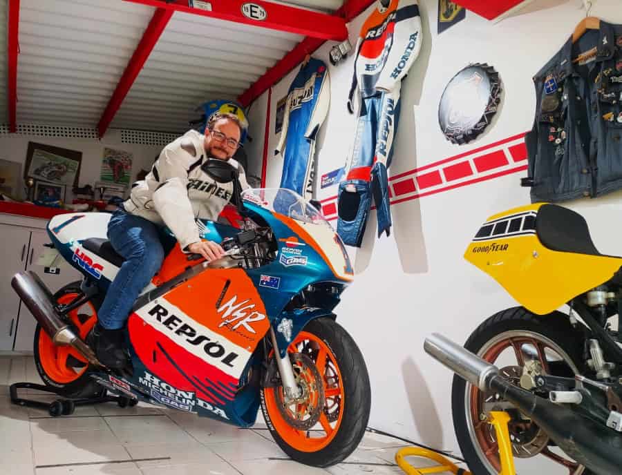 Aquí tenemos de nuevo a nuestro amiguete (de hace muchos años) haciendo de las suyas… otra vez. Ya vimos su réplica Yamaha Kenny Roberts RD 350, y ahora tenemos ¡una NSR 500 Doohan Réplica!!