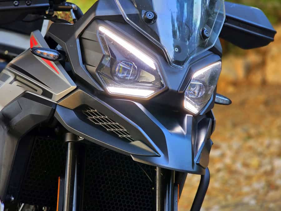 Declara 87 caballos, lo cual desde luego no es un dechado de potencia, y eso hará que muchos lancen sus críticas, pero de eso hablaremos más tarde. En cuanto a su relación calidad-precio es, sin duda, el gran arma que, seguro, la hará triunfar en nuestro mercado. Para comenzar, mira las fotos y piensa que su precio es de 9.990 euros, varios miles por debajo de lo que podríamos denominar su competencia directa pero, además de las maletas metálicas desmontables, tiene excelentes “gadgets” para los grandes (o aficionados) ruteros, como son puños y asiento calefactables, pantalla delantera regulable manualmente, dos tomas USB a los lados de la pantalla, dos buenas asas traseras asientos acolchados y cómodos… sin duda, una moto cómoda y dispuesta a viajar.