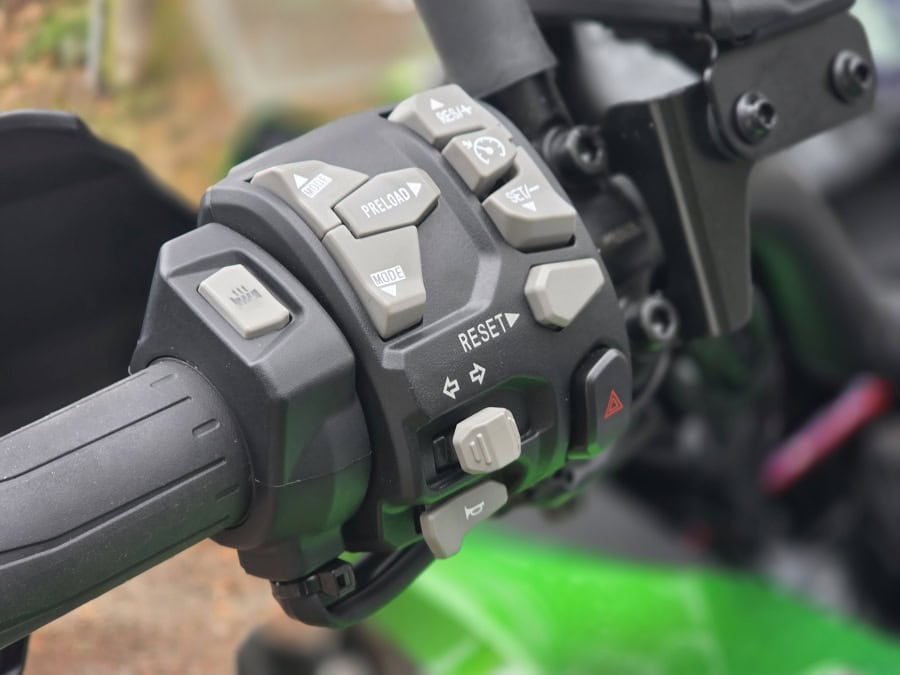 Eso si, hay que contar con que es una moto relativamente alta puesto que es una trail, por lo que la amortiguación es más larga, pero ya desde los primeros metros la Versys 1100 SE transmite una sensación de suavidad y control que sorprende en una moto de su tamaño y peso, que son los 259 kilos. Prácticamente puedes mover la moto a muy baja velocidad solamente dosificando el embrague y acelerador porque el motor empuja desde muy abajo, sin tirones, y permite circular en marchas largas sin esfuerzo ni trepidaciones. Puede que su motor tenga el origen en la super deportiva ZX 10, pero no es una moto explosiva (aunque corre, mucho), pero sí tremendamente utilizable sin vibraciones y molestias por muy larga o difícil que sea la ruta. Además, entre los muchos complementos tenía el arma mágica para el motorista en invierno: un botón añadido como un postizo en el puño izquierdo que activa los puños calefactables ¡Decididamente, este es complemento favorito para las fechas más frías!